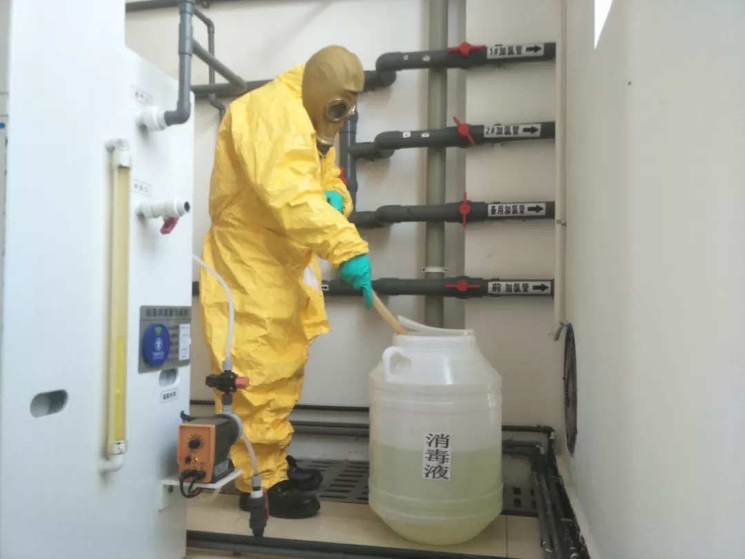 寻甸公司加强厂区及一线工作人员的安全防护,严格落实进厂登记、测温、消毒等措施,要求一线工作人员必须佩戴护目镜、口罩、手套等防护用具,保障员工身体健康及生命安全。同时,严格按照主管部门要求加强水质净化厂运营管理,增加对进出水的检测频次,及时掌握生产数据和调整工艺运行状态,加强设备设施巡检,特别是对消毒工艺设备的巡检检查,保障出水水质安全、生产运行稳定,对生产区域进行一日3次防疫消杀,确保厂区环境卫生安全,严防病毒滋生。