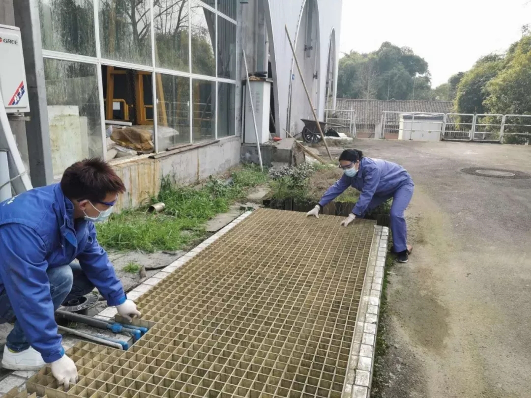 在疫情初期,乐山公司主动作为,积极联系当地住建、环保等部门,配合全区防疫部署要求,进行污水管道检查,排查污水收集隐患,保证在特殊时期污水井水流畅、截污干管支管污水不冒溢,全力保障区域内管网设施运转正常。针对疫情集中防控区冠英镇,乐山公司组织员工找到污水源头,挨个检查井进行排查,并联系当地政府建议在冠英镇污水源头每天进行投药消毒,由乐山市防控中心人员进行监督,预防污水溢漏对周边地下水造成污染。