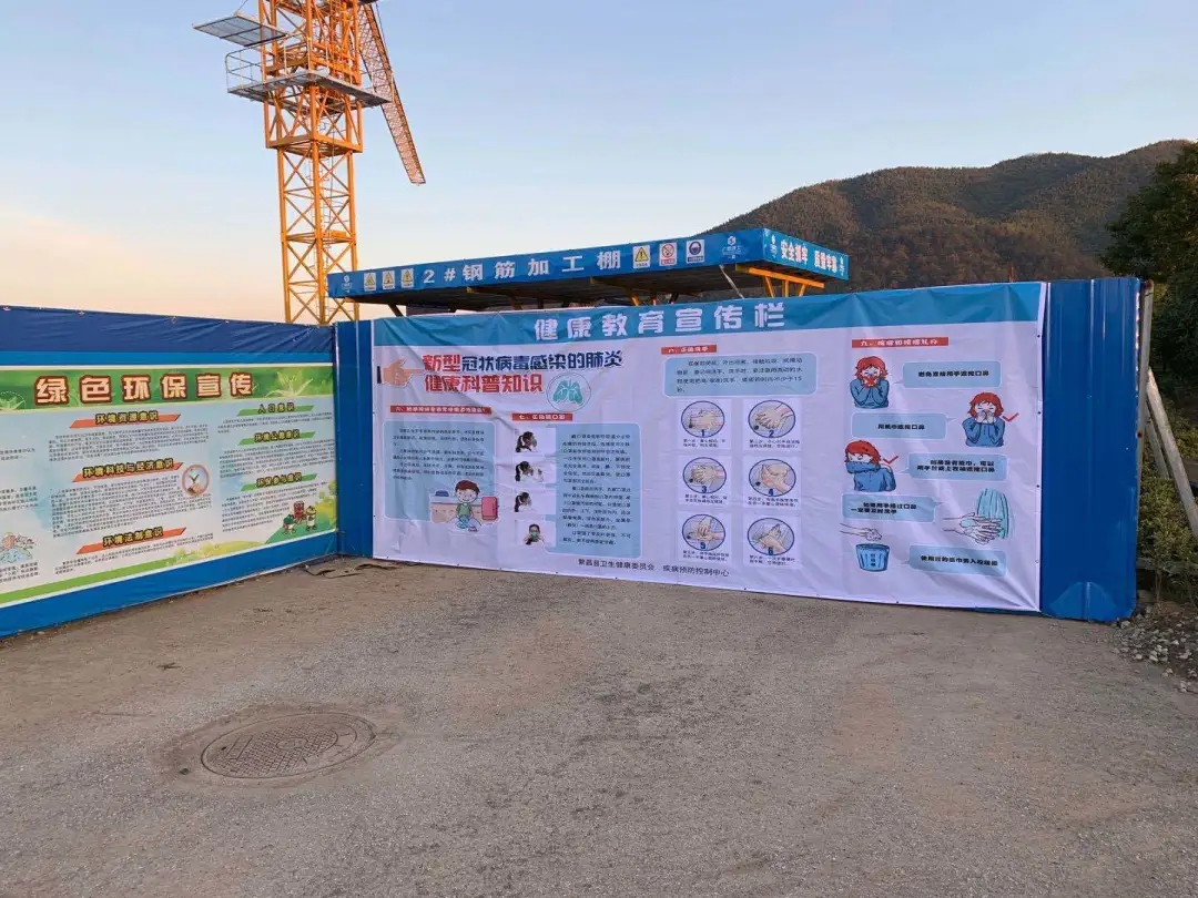 现场管理方面,建立进出场登记和体温检测制度,施工现场、办公区、生活区分别设立门卫,门卫保证24小时持续有人值班,并对所有人员进行体温测量。确保防疫举措与宣传工作同步进行,通过信息推送和现场宣传培训等方式提高工人防疫意识,以保证项目开复工有序推进。