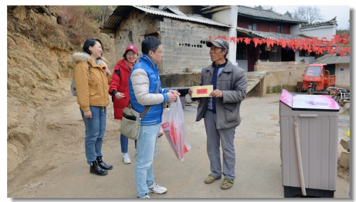 为积极响应落实中央、省、市关于“我们的中国梦•文化进万家”相关精神,努力做好文化惠民、文化乐民工作,2月8日在新春佳节来临之际,昆明市文化和旅游局、昆明市文化馆组成的昆明市文化志愿服务小分队带着满载新春祝福的春联、福字及慰问金来到了对口帮扶的禄劝县团街镇治安村给帮扶对象送上祝福。小分队员挨家挨户把福字和春联送到了建档立卡的68户帮扶对象当中,以“送文化”、“种文化”的方式让帮扶对象在新春到来之际感受到最真挚的祝福。在68户的帮扶对象中,昆明市文化和旅游局还专门为10户年老体弱的困难户送上了春节慰问金。