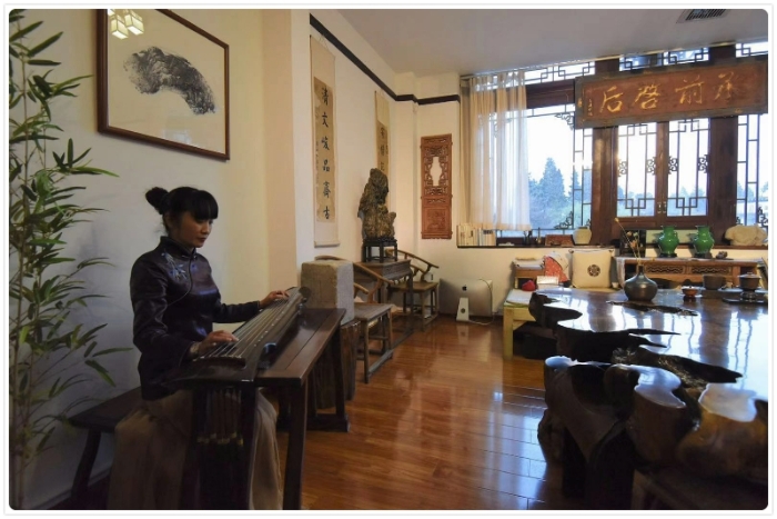 在云园,不仅可以从视觉上体验到五千年文明的碰触,湖居的主人还力求达到精神上的连接架构。小院里,到处摆着各种各样的石头,有恒越千年的石雕石刻——魏晋南北朝时期的佛榻、唐代的八音菩萨、隋代汉白玉佛像,也有刚从山上采下未经人工雕琢的原石。每块石头都有自己的名字,都有自己的故事,“松石琴荐”“疏梅前尘”“煎茶落闲”“半溪云叠”……优美而又富有深意。