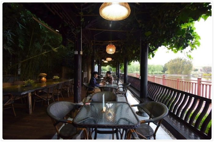 “疏梅前尘”指的是桂花树下那块圆润灰黄的石头,因为据说梅花是桂花的前世。小院里,还有一条绿意盎然的湖边走廊,有个颇为浪漫的名字——“别鹤虚廊”。傍晚约几位好友坐在这里,斟上一壶热茶,一边看五彩的晚霞与清澈的湖水交相辉印,一边听着竹质风铃叮当作响谈天说地,人生之惬意舒适莫过于此。