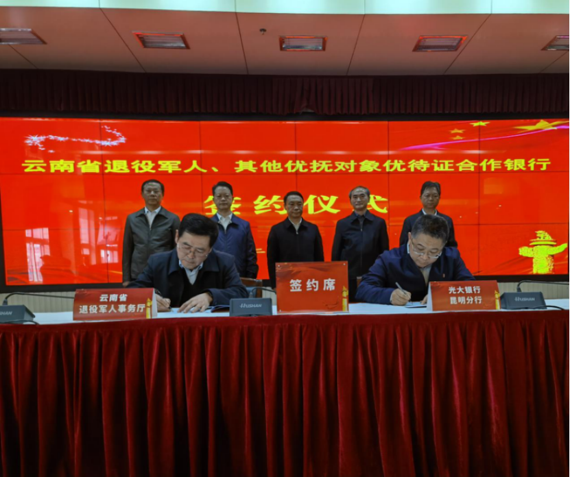 光大银行昆明分行与云南省退役军人事务厅签署“优待证”发放合作协议