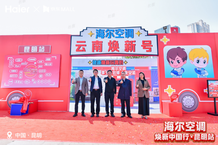 昆明信息港讯 为响应国家家电以旧换新政策号召,助力云南省绿色家电消费升级,3月28日,海尔空调联合昆明市商务局举办的“海尔空调 焕新中国行”启动仪式在昆明京东MALL隆重举行。昆明市商务局局长李忠、海尔智家云南分公司总经理袁勇、京东五星电器(云南)集团有限公司总经理张琼兰共同出席活动并致辞,共同呼吁消费者关注空调健康隐患,通过以旧换新拥抱智慧健康生活。