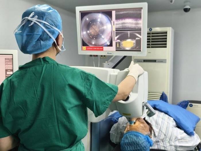 昆明艾维眼科医院副院长安丽进行飞秒激光白内障手术