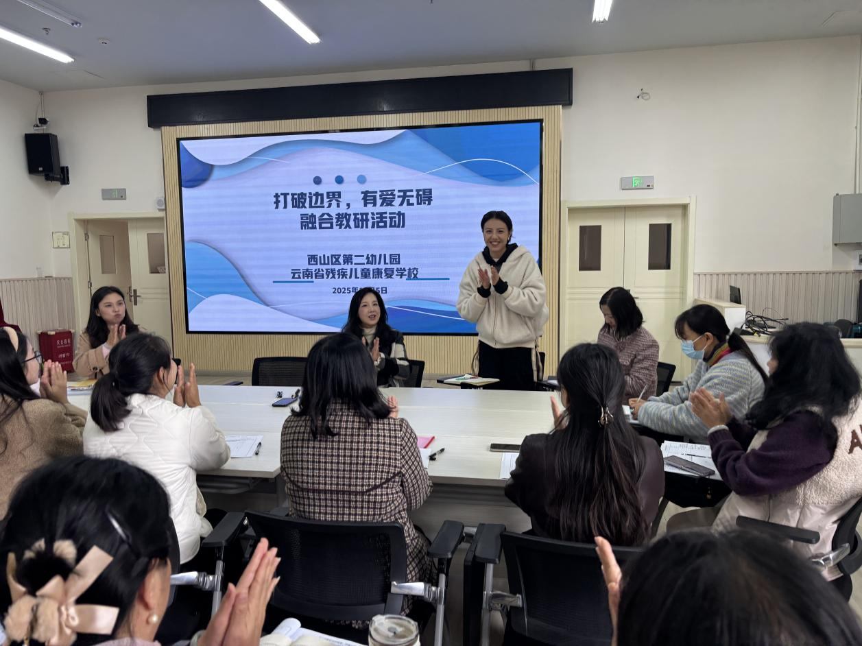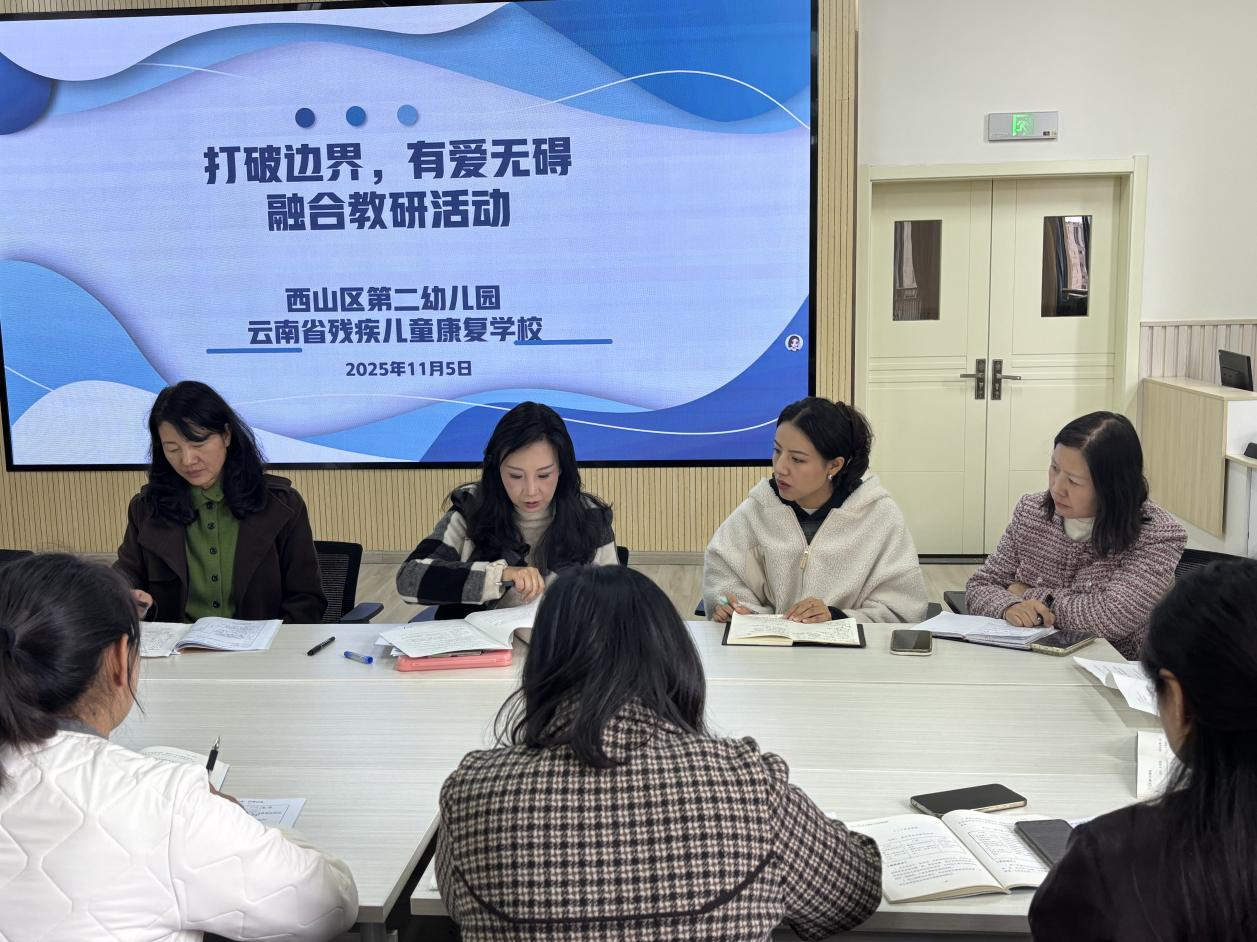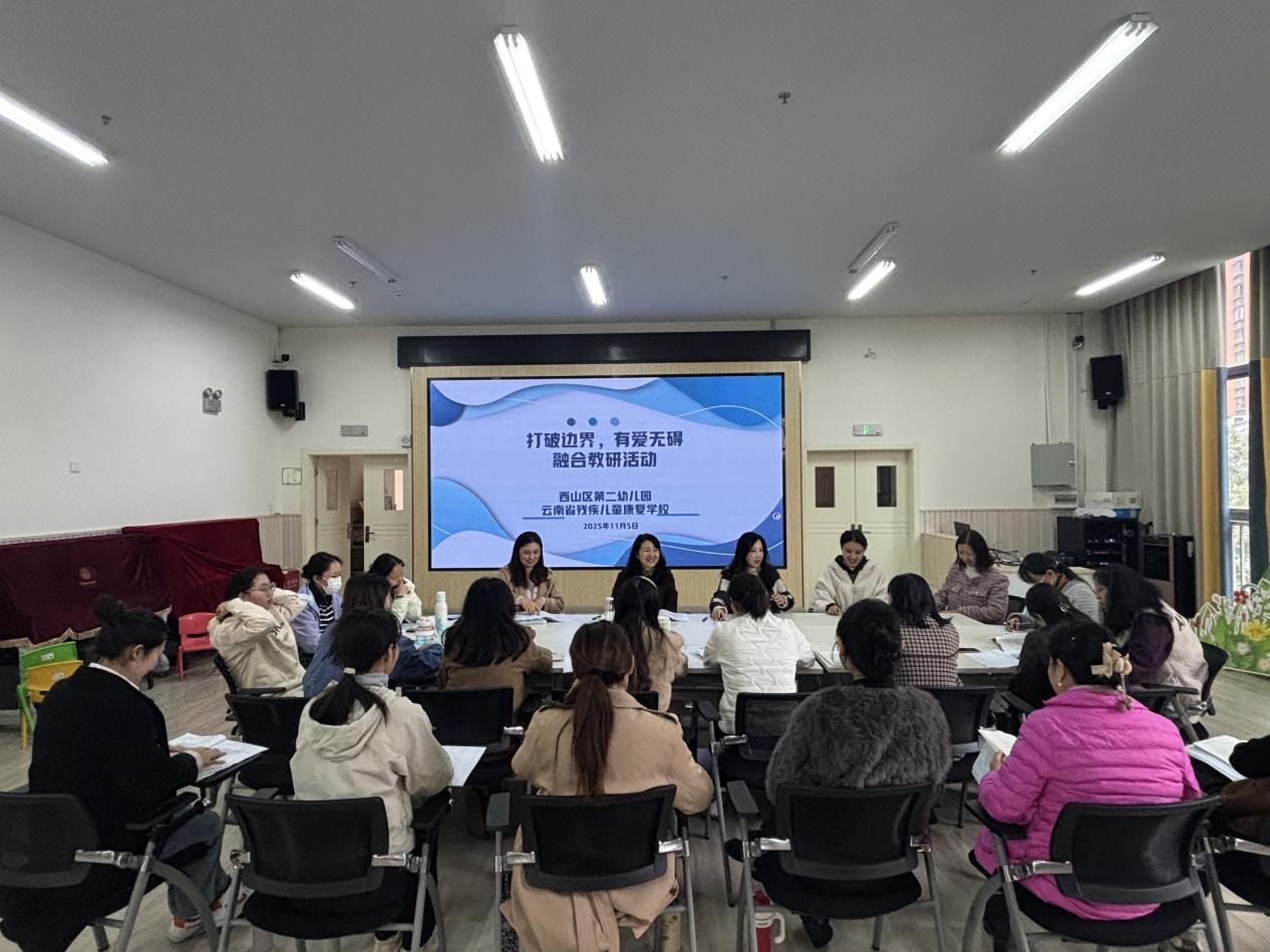 昆明信息港讯 通讯员苏凌子 杨艳萍 近日,为深入推进融合教育实践,搭建普通教育与特殊教育跨机构交流桥梁,昆明市西山区第二幼儿园以“打破边界,有爱无碍”为核心主题,成功举办融合教育专题教研活动。活动特别邀请云南省残疾儿童康复学校教师团队莅临指导,双方教师齐聚一堂,共探适宜不同发展水平幼儿的优质教学路径,为推动学前融合教育高质量发展注入新动能。
