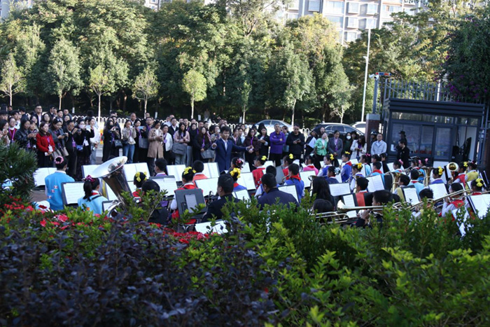 欢迎仪式中,学校管乐团奏响《中国少年先锋队队歌》与校歌《好好做个人》,澎湃的乐曲诠释着“为党育人、为国育才”的初心使命。彝族、傣族、白族等民族的“小导游”们以双语迎宾,带领嘉宾漫步“石榴籽文化长廊”,感受“中华民族一家亲”的生动实践。今年是学校建校85周年,校史沿革与质量成果展则系统梳理了学校在党建引领下,依托多种教育资源,在课程改革、师资培养等方面的成果,是附小一路走来办人民满意的教育的生动历史。