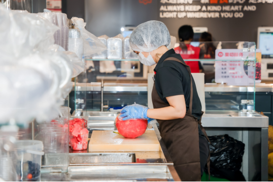 在各品类柜台,深度加工服务成为标配:肉禽柜台可提供切丝、切片、绞肉服务;海鲜柜台提供剖鱼、切段、清洗、打氧服务;水果柜台则创新地根据甜度为果切编号,推荐品尝顺序,并提供清洗、去皮、切块服务。