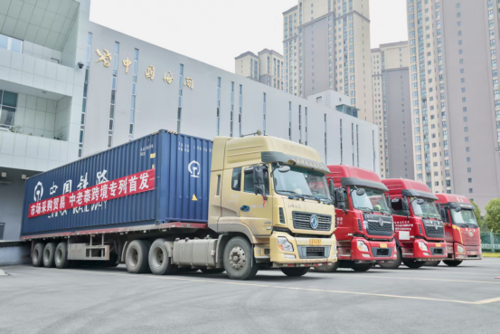 ▲“市场采购贸易+中老泰跨境专列”出发。供图