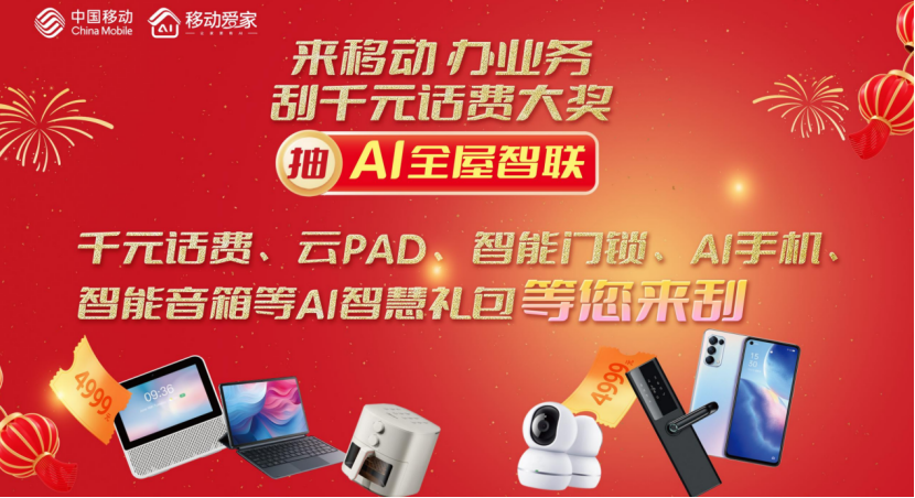 本次活动奖品丰富、诚意十足,用户只要参与就能畅享移动福利。不仅有至高4999元话费等特等奖,还有云PAD、智能猫眼门锁、打印机、AI手机、智能音箱等一众热门实用智能好物,以及话费券、AI视频彩铃、权益组合券包等福利发放,让每位参与用户都能薅到福利、收获满满。
