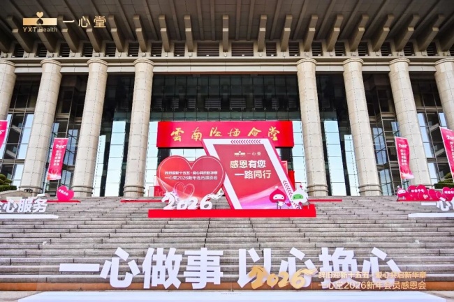 昆明信息港讯 2025年12月31日,“辞旧迎新十五五・爱心共启新华章”一心堂2026新年会员感恩会在昆明隆重举行并圆满落幕。恰逢“健康中国”战略深化与“十五五”规划开局的关键节点,这场盛会不仅是企业与会员共迎新年的温情之约,更是一心堂药业集团响应国家号召、回馈社会信任的生动实践,1500余名全国各地会员代表、行业伙伴及政府部门嘉宾齐聚一堂,共同见证企业深耕健康事业的责任与温度。