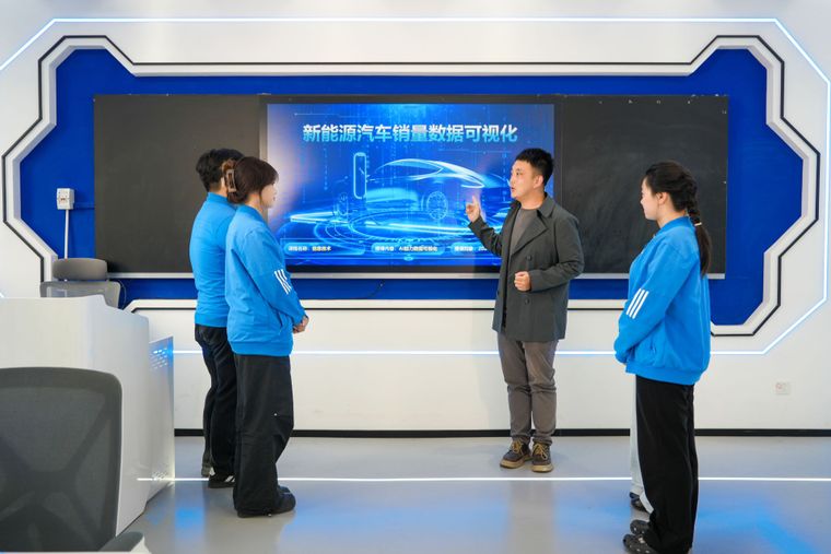 在贾文哲看来,许多学生AI技术学得不错,给他一个明确的任务他能完成,但你问他“这个技术能用在什么地方、能解决什么业务问题”,他就说不上来了。学生缺少企业的“场景感”,这也是贾文哲为什么坚持用真实的行业数据来教学的原因。“我那套获奖的教学设计,用的不是教材上虚构的‘某超市销售数据’,而是比亚迪真实的市场数据和懂车帝上真实的用户评价。学生分析完之后能直接看到:原来企业做市场决策,就是这么用数据的。”
