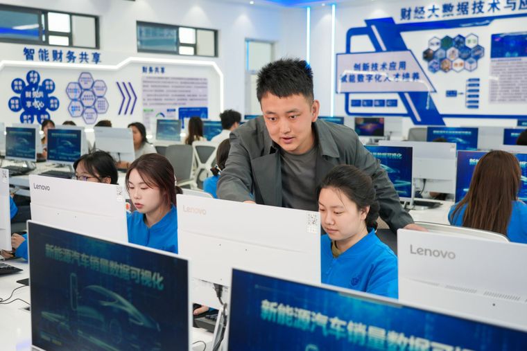 AI时代对教师提出了全新要求:他们不再是知识的权威,而是学习生态的设计师、认知冲突的激发者。学校把“双师型”教师培养作为AI教育改革的支点。在云南理工职业学院,贾文哲的课堂已经成为一种现象。他的信息技术课没有照本宣科的概念堆砌,而是把产业经验转化成了教学设计。“用的是真实的行业数据,解决的是真实的业务问题,不是一套为了比赛编出来的表演课。”