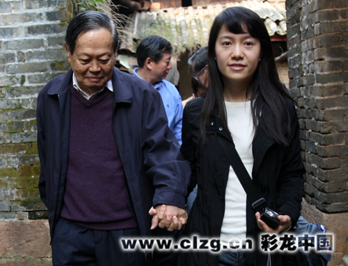 上午9点40分,杨振宁和翁帆一行健步走来。“8年前这里还是农田,没有这么多房子。”杨振宁惊叹着今日变化。再往里走,“惠家大院门楼”的牌子让他非常开心。“dearing,让我们拍张照片吧。”在牌子前面,杨振宁站定并搂住翁帆的腰。