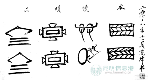 用东巴文题字“昆明读本”