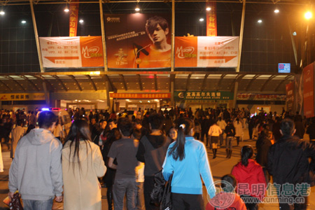 11月29日下午,记者来到了昆明拓东体育场。离演唱会开始还有2个小时,但是广大"杰迷"已经等不及了,纷纷从体育场的各个通道涌进。记者在采访“杰迷”的过程中发现到一部分歌迷大概在一个月以前知道周杰伦将在昆明开演唱会以后第一时间就买了票,虽然买的是场外票,但是内心仍然很激动。