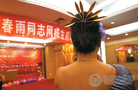 在几个漂亮“女性”背影的诱惑下,一对对挽着手的男性来宾走进会场。昨天(1日)下午,昆明首个“同志网”——“昆明春雨同志网”开通,来捧场的大多是圈内人。