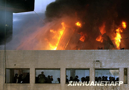韩国首尔警察今天同不愿迁走的当地居民发生了冲突。电视图像显示,居民在四层高的一个建筑顶上向警察抛扔了火焰炸弹。报道说,在警方控制这座建筑后,人们在其中发现了5具尸体。不过目前尚不清楚是什么导致了他们死亡。
