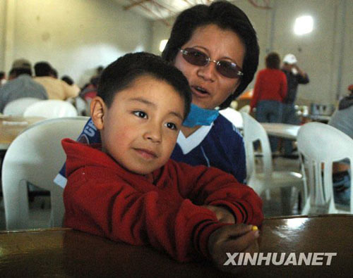 5月2日,墨西哥东部韦拉克鲁斯州男孩埃尔南德斯和母亲在政府临时搭建的免费食堂休息。