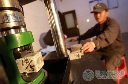 宜良县金珠水泥有限公司出产的水泥都要经过严格的抗压检测首席记者陈昱州/摄