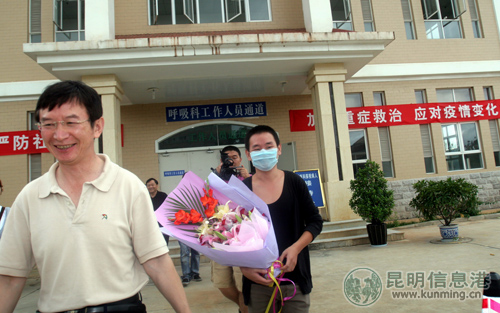 上午10点,省传染病专科医院呼吸科隔离病区的大门打开,医院的相关专家参加了欢送仪式。该院院长樊移山表示,这是该院接收并治愈的第二例甲流患者,也是云南省第三例治愈出院的甲流患者。