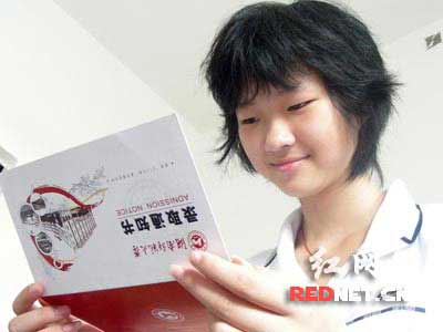 “我不是什么‘神童’,只不过智力比一般的同龄人开发早一点便罢。我成绩取得,一是妈妈从小就循循善诱的教诲,二是初中、高中各学习阶段中师长们无微不至的关照。我也没什么学习秘诀,在校读书完全是‘照章办事’,从不喜欢熬夜,喜欢阅读各式小说,还喜欢打打乒乓球、听听音乐、玩玩游戏,以及和同学们一起打打闹闹。我认为学习就得保持充沛的体力和精力,这样才有学习效率。如果硬要说有什么秘诀的话,就是‘坚持’二字。记得高三下半期时,我的数学还总是在70分徘徊,我决心攻下它。那几个月时间里,我每天都要抽时间做数学题,一段时间后,成绩却没什么明显进步,可我没有放弃,不是说‘坚持就是胜利’嘛!最后高考时数学得了106分。我最爱‘柯南’,喜欢探寻真相的过程,最想报的专业是基因工程。因希望追溯人类的本源,来服务于社会,这是我的最大理想!”(通讯员 黄伍)