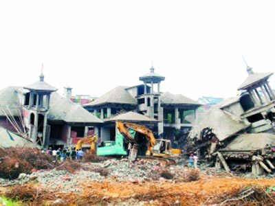 昨日下午,6台重型炮机同时开工,被“直通车”曝光、位于宝安区民治街道龙岸小区旁的9栋违建别墅轰然倒塌。在现场督战的宝安区副区长、民治街道党工委书记李勇告诉记者,违建拆除后将进行围合式管理,政府部门也将尽快完成征地工作,彻底杜绝违建回潮。