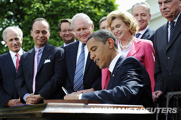 资料图片 5月22日,美国总统奥巴马在华盛顿白宫签署国会此前通过的信用卡改革法案。该法案旨在禁止各种隐藏收费条款,保护消费者利益。新华社/路透