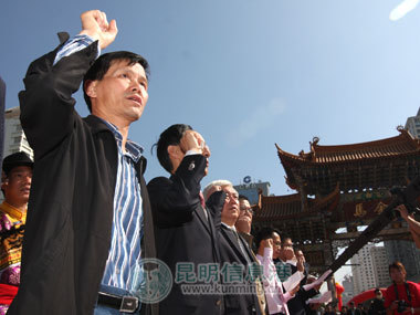 昆明信息港讯 记者 刘恩成 “我们在此庄严宣誓:做负责任媒体——对新闻负责,对公众负责,对党和人民的事业负责……”今天上午11点10分左右,云南省委宣传部有关领导、来自省级、市级26家媒体近400位新闻工作者在金马碧鸡广场庄严宣誓,整齐有力的誓词响彻昆明上空。