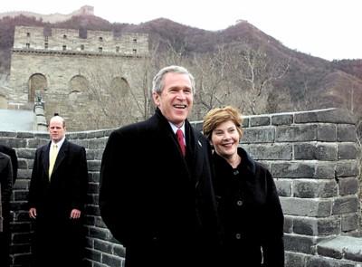 资料图:布什夫妇探访长城