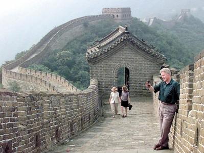 资料图:克林顿在长城上照相