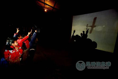 在启动仪式举行的同时,个旧市贾沙乡他白村村委会也拉起了白色的电影屏幕,村民们在饭后三五成群地赶到现场,孩子们更是欢呼雀跃,一个8岁的小男孩开心地告诉记者:“我最喜欢看动画片了。”而一位六十多岁的大妈也表示:“在家门口就能看电影,真是太好了。”记者了解到,当天放映的内容非常实用,先是播放了森林防火知识,接着又放映了全国第一部防震减灾科普动画片《小蟾童》。而在启动仪式现场播放的影片则是《别姬印象》,该片的男主角王黎清也来了到现场,提起这次拍戏的经历,他笑着告诉记者:“很好玩啊,这是一次难忘的感受电影的经历。”