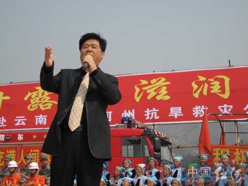 4月13日上午9:30,由红河州抗旱救灾工作领导小组主办,中共红河州委宣传部,红河州文化局,弥勒县委、县政府,北京玛缨花文化有限公司共同承办的“爱心甘露滋润红河”首都文艺工作者赴云南红河抗旱救灾公益慰问演出在弥勒县弥阳镇温泉村举行。一大批爱心企业、慈善机构及社会各界人士现场为灾区捐款奉献爱心。演出现场来自首都的演职人员和省、州、县领导带头捐款。