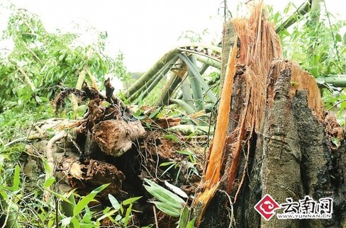 “暴风雨中,我只听到‘咔嚓’一声巨响,紧接着,这棵平时要两个人才能合抱的大榕树就响个不停,还像陀螺一样在风中转了起来。”波南班当时简直就被眼前的情景惊呆了,一直呆在原地看着大树大约旋转了5分钟后,最终轰然倒下,“幸好,大树倒塌的方向正好与我家错开了40度左右,只是把周围的竹子和小树压断。当时要是砸在我家屋顶上,一家人肯定来不及跑出去。活50多年,还从没见到过这么大的风。”一天之后,波南班还是非常害怕。
