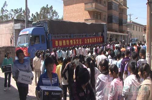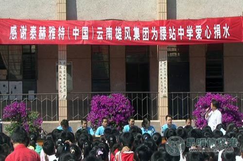 在干旱的阴影逐渐开始淡去之际,全云南省依然有很多地区处于干旱状态,饮水依然是个棘手的难题,本着为抗旱救灾出一份力,为灾区人民贡献一份爱心的原则,4月28日一大早,泰赫雅特(云南)中心便联合北京总公司发起了一场抗旱救灾的实际行动,出资两万余元,购买矿泉水1500箱共36000瓶矿泉水,由北京总公司的相关领导亲自督送往云南省禄丰县金山镇杨家庄腰站中学,深入灾区,为广大莘莘学子送上一份关爱,鼓励他们勇敢挑战,战胜困难,勇往直前,为将自己铸造成为对社会有用的人才而努力。