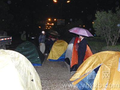当晚23时左右,由于双方没有达成一致,小区里的部分业主在小区外的马路上“安营扎寨”。