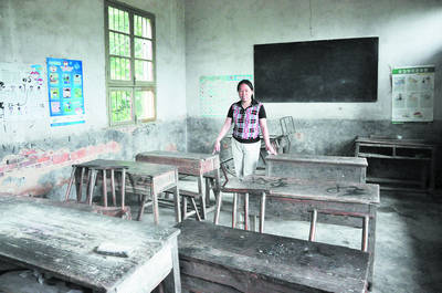 陈老师站在她坚守了28年的教室里,有些不舍。唐建兵 刘胜蓝摄影报道