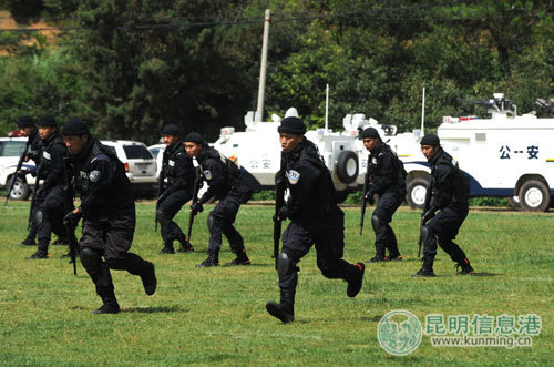 昆明市公安局特警支队举行实战演练。记者杜文蕾摄