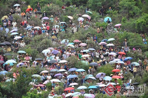 山坡上树丛间都站满了村民
