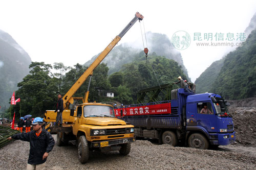 “昨天刚建好的钢架桥桥墩也被冲毁了。”正在架桥的工人说,如果继续架设钢架桥,则要把原长36米的桥梁增加到45米,并重新从大理运来架桥物资。原定于今天前完工的钢架桥,施工难度明显增大。如果继续下雨,水势不减,原计划今天通车的公路,不知要拖到何时。