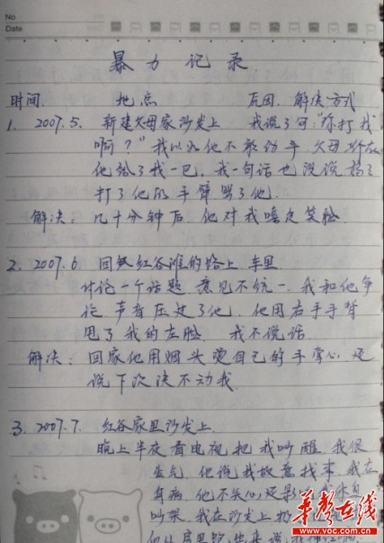 “五年的噩梦,我只想解脱。”近日,有网友在华声、搜狐论坛发私人日记,倾诉自己多年来遭遇丈夫噩梦般的家庭暴力。男方回复称纯属妻子捏造、预谋,自己才是真正受害者。究竟真相如何?