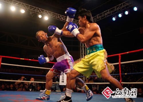 昨天,2010中国昆明WBC亚洲拳王争霸赛拉开战幕,昆明拳手夏钰钦在第一场对抗赛中战胜韩国对手李男俊,徐从良与女子沈丹月则在挑战WBC洲际金腰带时遗憾失利。在压轴大戏中,来自文山的熊朝忠以绝对实力KO对手泰国拳手庞潘,终于将WBC50公斤级洲际金腰带留在中国、留在云南,保住了中国职业拳击发祥地的名誉。