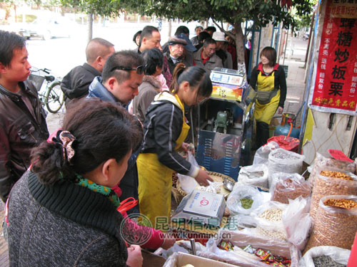 大年三十昆明一干货铺前市民们已经早早排起长队置办年货 记者王鹏/摄