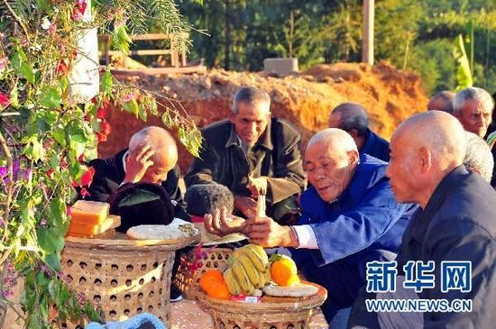 资料图片:2月3日,村民在长者带领下祭拜祖先,为村寨祈福。 2月3日是农历新年的大年初一,云南省临沧市沧源佤族自治县帕良村,在德高望重的长者带领下,全村男女老幼聚集在村寨文化室前的打歌场,祭拜祖先,吹起芦笙,唱歌跳舞,祈求村寨来年风调雨顺,生活幸福安康。图为佤族男女老幼在村寨打歌迎新年。 李萌/摄