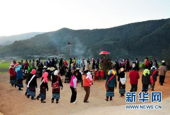 资料图片:2月3日,佤族群众在村寨打歌迎新年。 2月3日是农历新年的大年初一,云南省临沧市沧源佤族自治县帕良村,在德高望重的长者带领下,全村男女老幼聚集在村寨文化室前的打歌场,祭拜祖先,吹起芦笙,唱歌跳舞,祈求村寨来年风调雨顺,生活幸福安康。图为佤族男女老幼在村寨打歌迎新年。李萌/摄