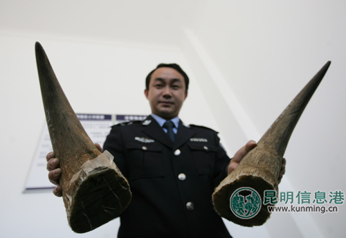 昆明森林公安查获总价值138万元犀牛角