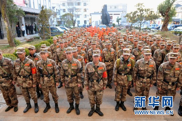 3月4日,参加扑火的部队官兵已经到达剑川县城集结。 3月3日,云南省大理白族自治州剑川县金华镇发生林火复燃,共造成扑火人员9人遇难,7人受伤。 新华社记者 陈海宁 摄