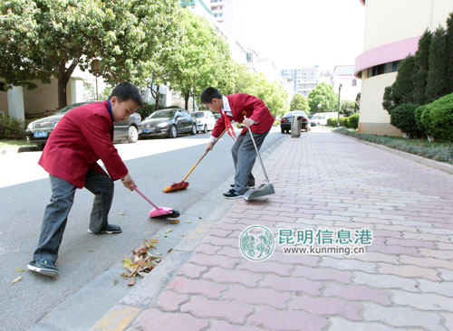 昨日,在“学雷锋纪念日”当天,金康园小学的学生们放弃假日休息时间到金康园小区打扫街道。记者谢慧/摄