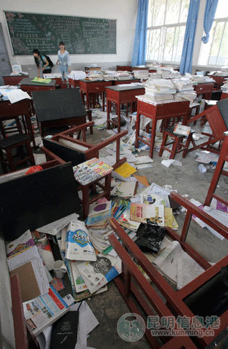 盈江第一中学高三教室内仍是一片狼藉