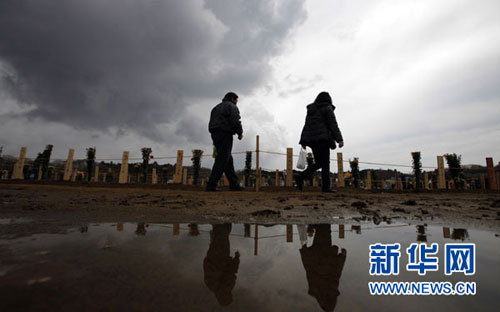 3月31日,在日本宫城县东松岛市,人们走过一处地震和海啸遇难者的临时集体墓地。